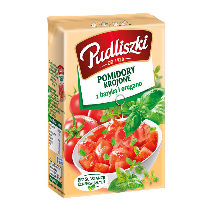 PUDLISZKI POMIDORY KROJONE Z BAZYLIĄ I OREGANO 390G